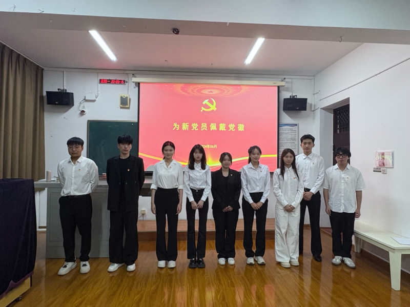 随后,党员教师为新党员佩戴党徽,小小的党徽代表的是身份,肩负的是责任,镌刻的是担当,希望全体新发展党员同志在党徽的指引下以高标准要求自己,时刻牢记初心使命,以忠诚为笔,书写对党的无限热爱;以担当为墨,描绘为人民服务的壮丽画卷。