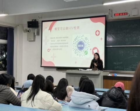 在核心知识讲解环节,辅导员系统科普了艾滋病的传播途径、发展过程与预防措施,重点澄清了日常生活中不会传播艾滋病的常见误区,引导学生树立科学、理性的防艾观念。随后,班会进入互动实践环节,现场通过安全套使用示范、自助检测服务推广、“防艾知识快问快答”等形式,让同学们在参与中掌握实用防护技能,增强自我保护能力。