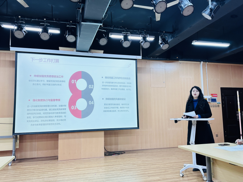 她强调,各支部要继续加强组织建设,创新工作方法,确保党的方针政策和决策部署在基层得到全面贯彻和有效执行。同时,要注重发挥党员的先锋模范作用,推动学院各项事业的发展,要通过开展更多贴近实际、贴近生活的党建活动,增强党组织的凝聚力和战斗力,为学院的稳定和谐发展提供坚强的政治保证。