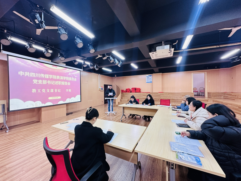 中共四川传媒学院表演学院委员会于2024年12月25日在A13-204组织开展2024年度党支部书记述职专题会,会议由党委书记张颖同志主持,学院党委委员、各支部书记参加会议。