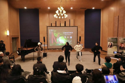中国音乐剧演员王克遥演唱了《颜色》(选自中国音乐剧《辛吉路的画材店》),以其精湛的演唱技巧和深情的演绎赢得了阵阵掌声。伍粤川先生在点评中,从中文音乐剧唱法的特点出发,对王克遥的表演进行了深入解读,使学生们对中文音乐剧演唱有了更深刻的理解。
