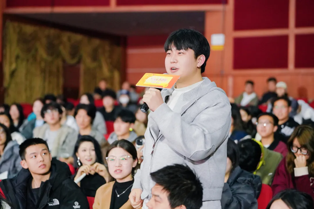 在互动环节,同学们踊跃提问,从表演细节的打磨到角色内心的挖掘,从行业现状到个人成长,每一个问题都饱含着对表演艺术的热爱与追求。主创们结合自身经历倾情分享,不仅传授了实用的表演技巧,更以温暖而坚定的态度鼓励大家——“青春里的阳光,不仅能照亮舞台,更能驱散成长中的迷雾,让人生多一份勇敢与豁达。” 这些真诚的交流,为同学们的艺术之路注入了更多力量与希望。